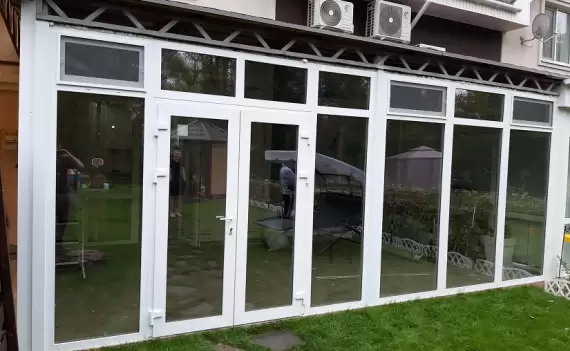Для террасы и фасадного остекления рациональным выбором станут алюминиевые окна. Холодные алюминиевые конструкции доступны по цене от 6 200 рублей за м², а теплые (с терморазрывом) – от 13 500 рублей за м². Долговечность свыше 50 лет.